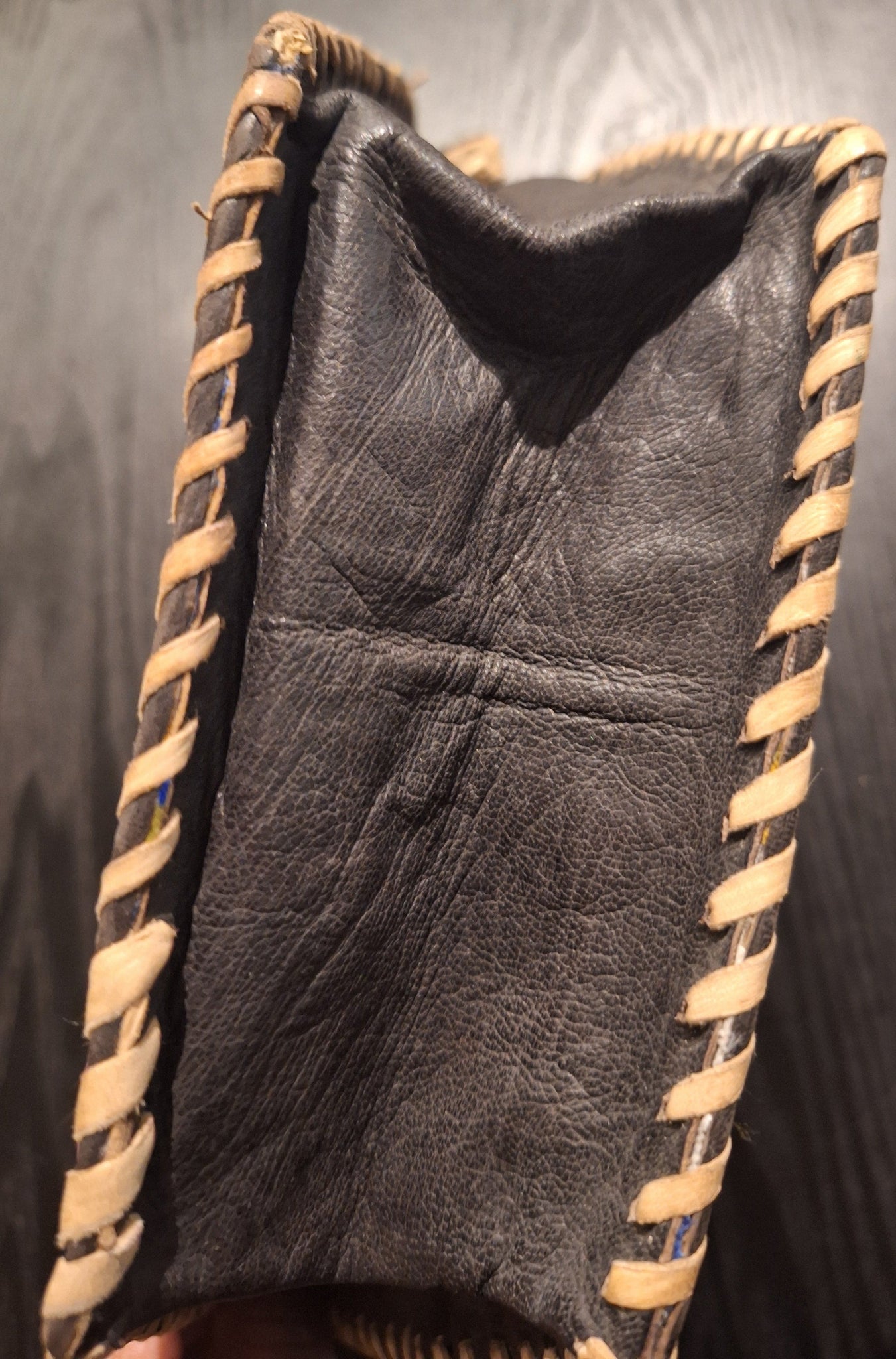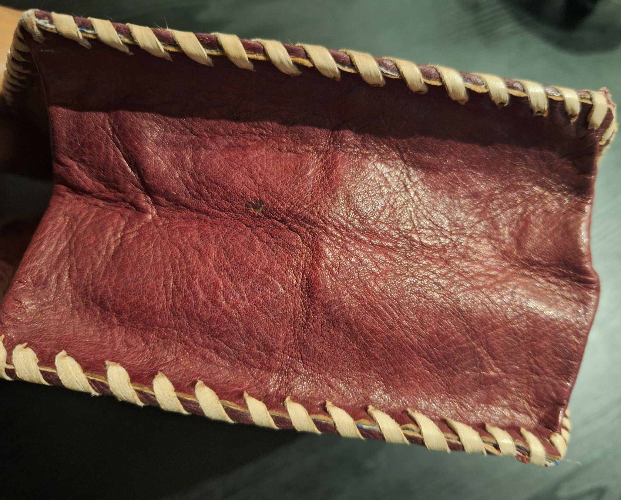 10" w x 8" h. Approx. 48" non-removable, leather straps