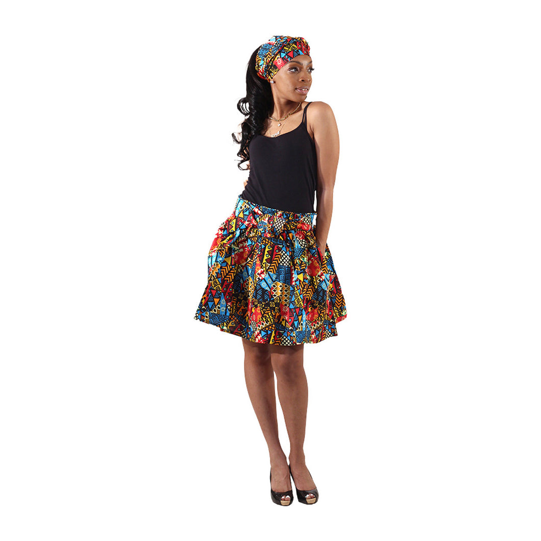 Colorful & flirty! A lightly pleated mini skirt with elastic waists so 'one size fits most'* & two straps at the waist that tie (to size) to the front or side in a stylish bow.